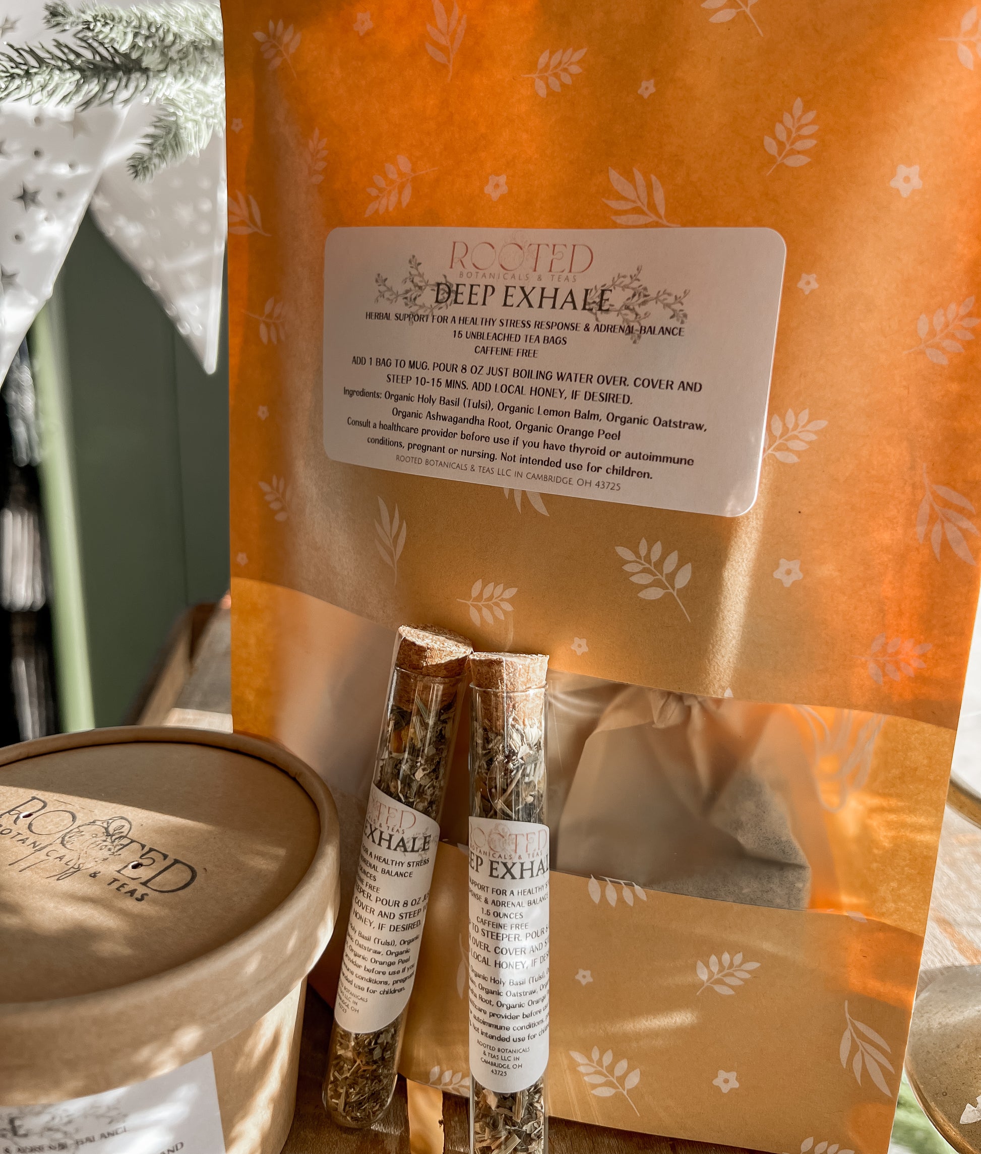 Deep Exhale is a calming, caffeine-free herbal blend crafted to support your body’s natural stress response and nervous system balance. Designed with earthy adaptogens and soothing botanicals, this gentle tea invites a sense of ease and grounding, perfect for moments when you need to slow down, center your thoughts, and breathe deeply.